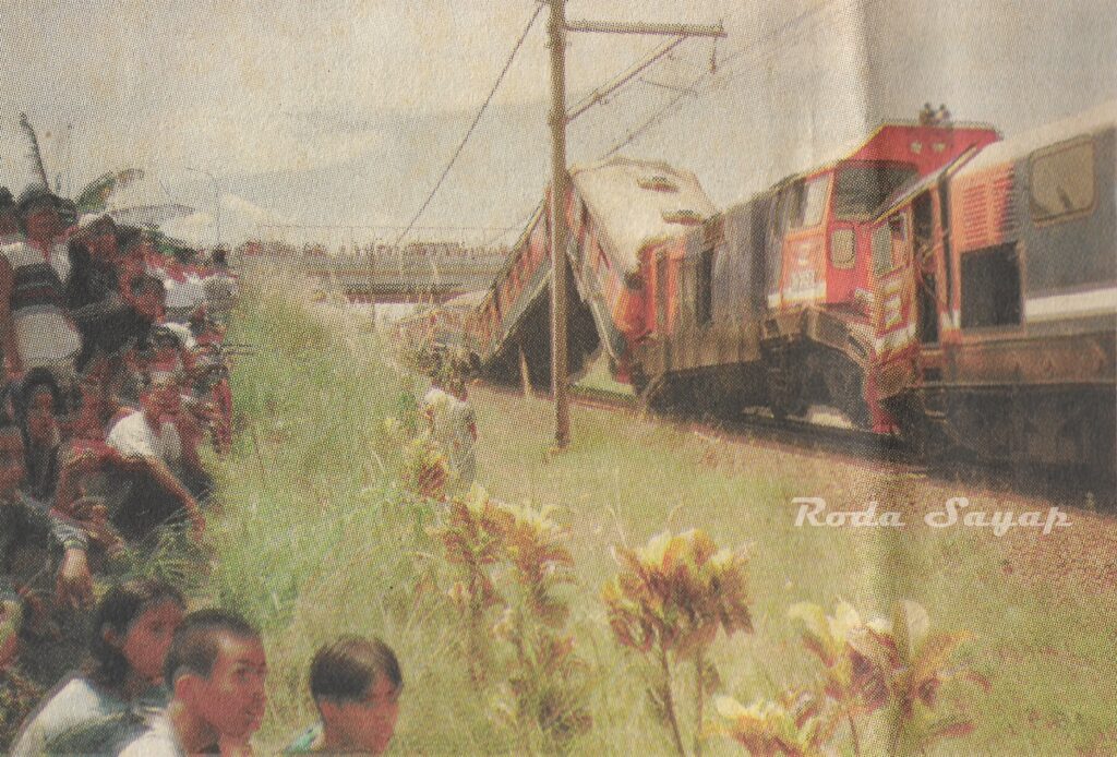 KA 906 dan KA 209 yang bertabrakan. Foto : Agus Mulyadi dalam Kompas, Selasa, 2 Mei 2000